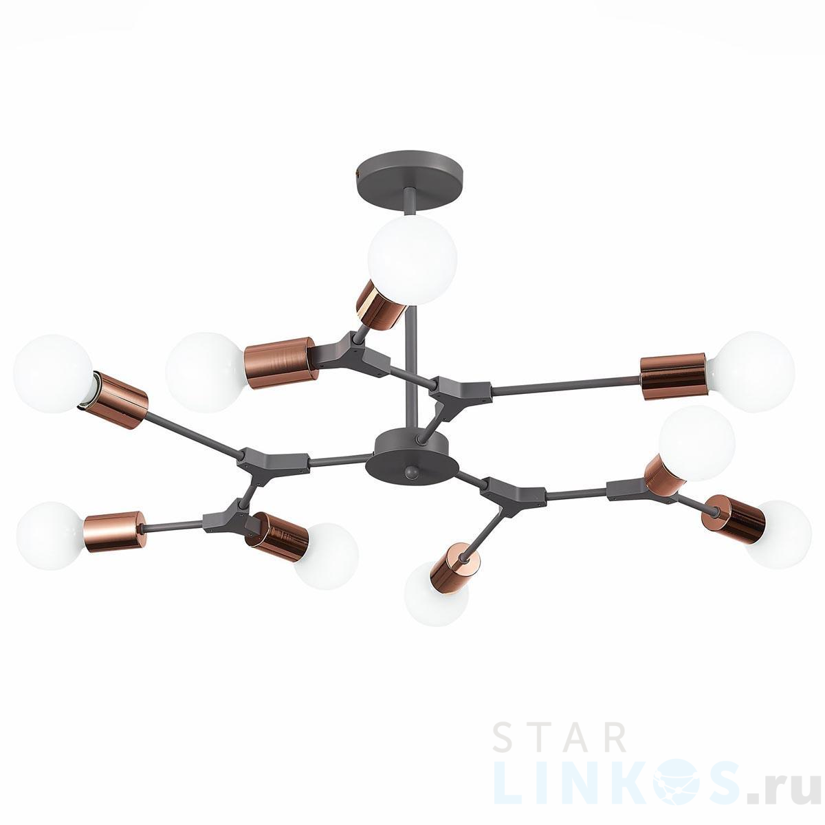 Поставщик рекомендует использовать лампы накаливания с цоколем E27 для освещения площади 30 м2. Потолочная люстра Evoluce Palare SLE106403-09 в стиле лофт используется в интерьере гостиной с установкой на потолок.
