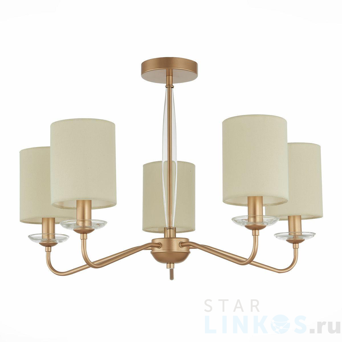 Поставщик рекомендует использовать лампы накаливания с цоколем E14 для освещения площади 11,1 м2. Потолочная люстра Evoluce Rita SLE108002-05 в используется в интерьере спальни с установкой на потолок.