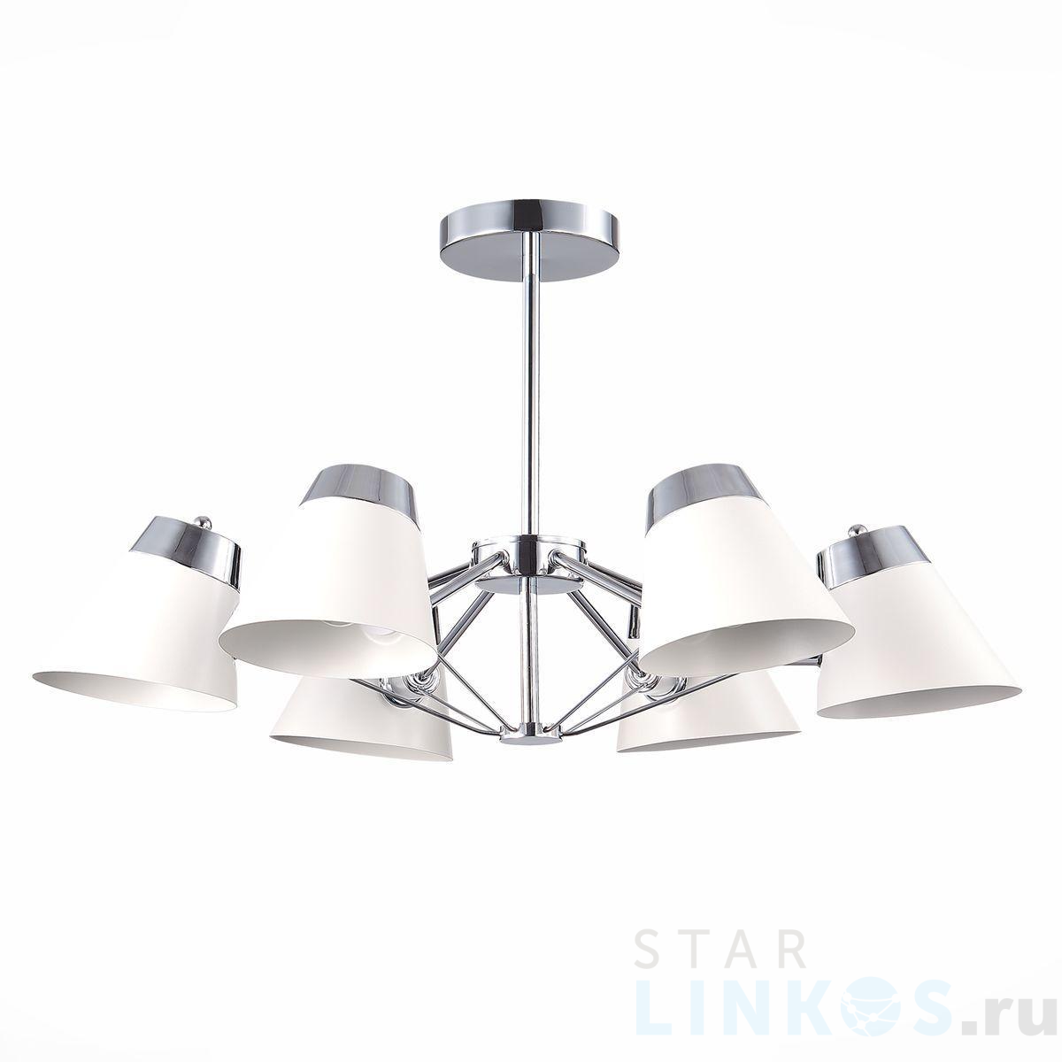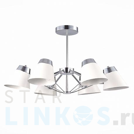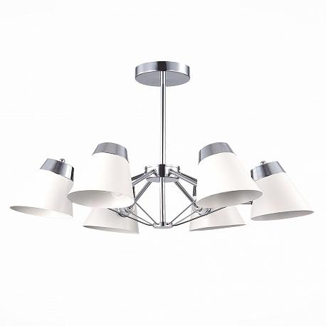 Поставщик рекомендует использовать лампы накаливания с цоколем E14 для освещения площади 13,3 м2. Потолочная люстра Evoluce Vario SLE155802-06 в стиле Хай-Тек используется в интерьере гостиной с установкой на потолок.