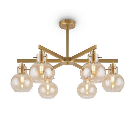 Поставщик рекомендует использовать лампы накаливания с цоколем E14. Потолочная люстра Freya Circle FR5183PL-06G в кантри-стиле используется в интерьере спальни с установкой на потолок.