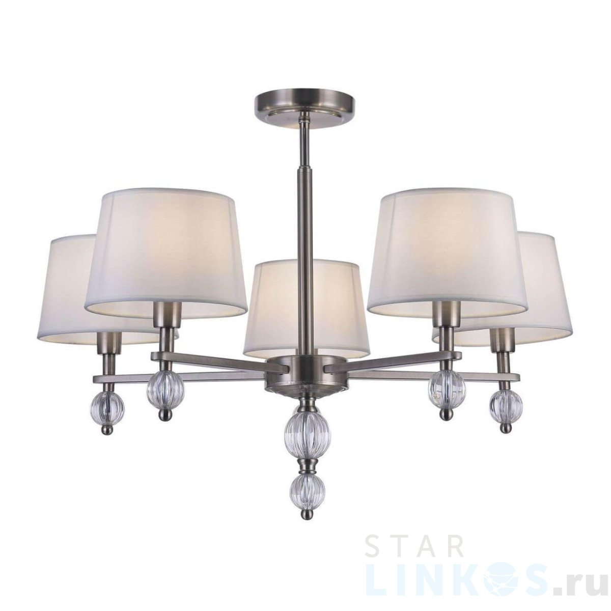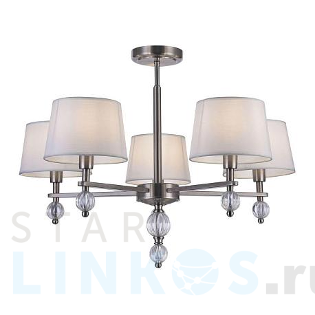 Поставщик рекомендует использовать лампы накаливания с цоколем E14 для освещения площади 16,7 м2. Потолочная люстра Freya Milena FR5679PL-05N в используется в интерьере спальни с установкой на потолок.