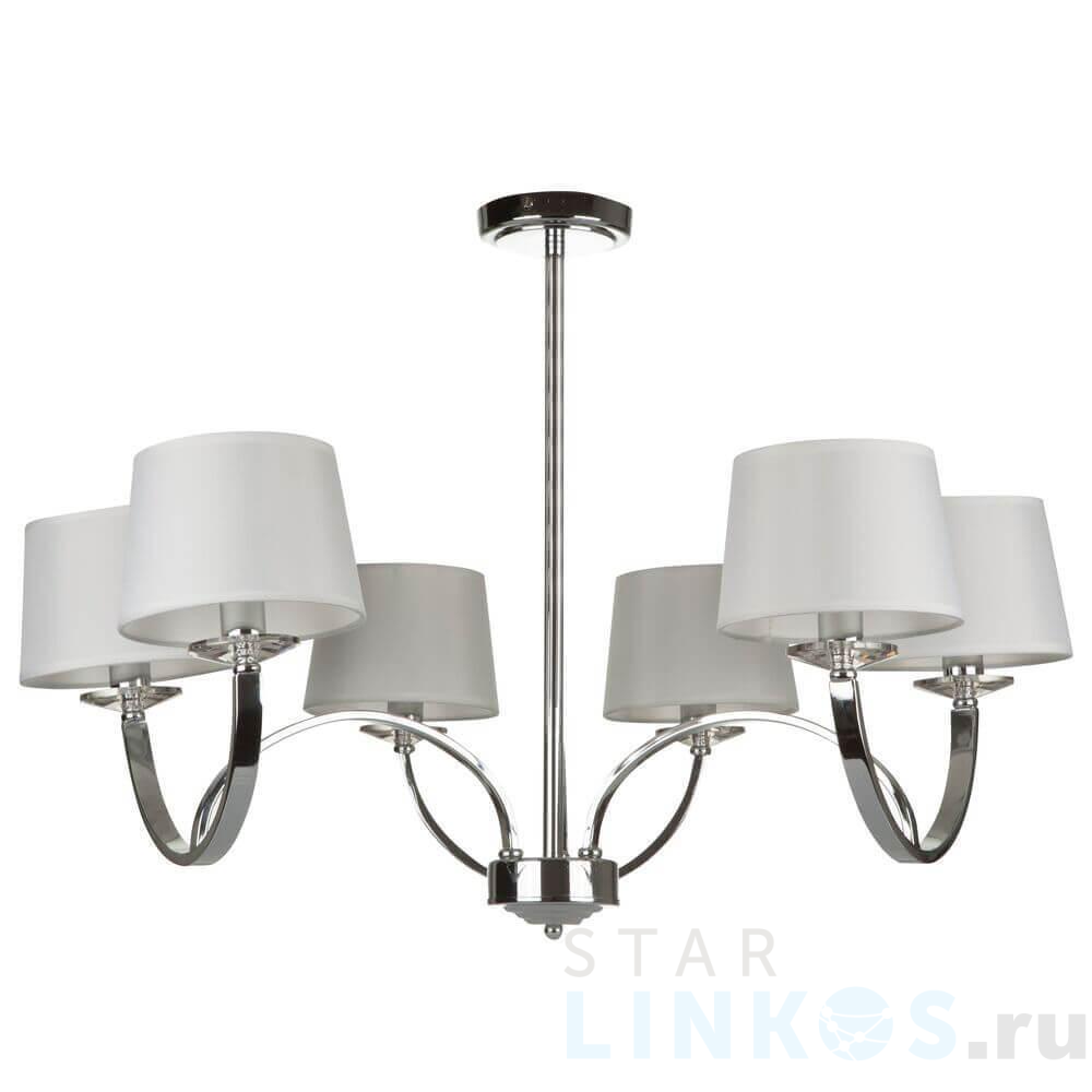 Поставщик рекомендует использовать лампы накаливания с цоколем E14 для освещения площади 13,3 м2. Потолочная люстра Freya Tina FR5034PL-06CH в современном стиле используется в интерьере спальни с установкой на потолок.