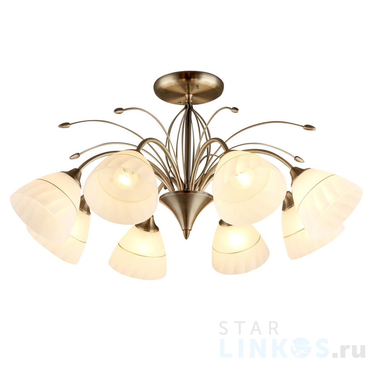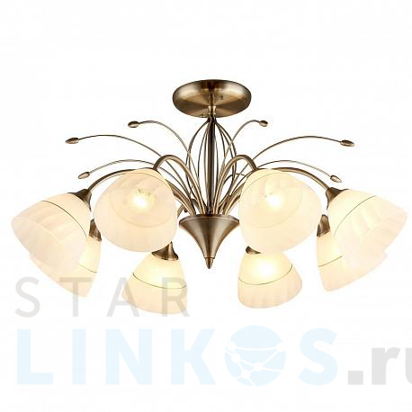 Поставщик рекомендует использовать лампы накаливания с цоколем E27 для освещения площади 26,7 м2. Потолочная люстра Hiper Evelina H026-8 в современном стиле используется в интерьере гостиной с установкой на потолок.