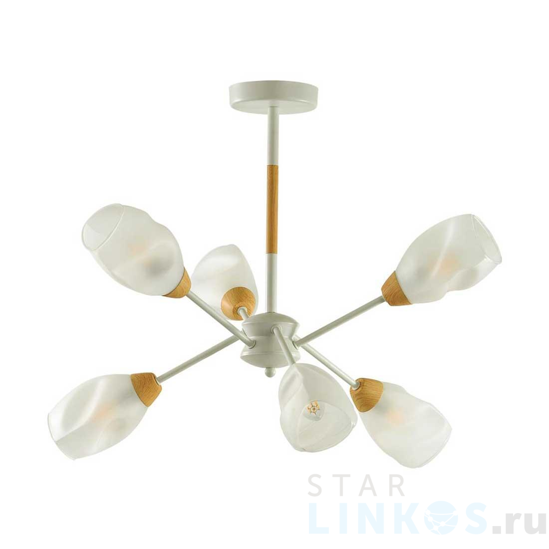 Поставщик рекомендует использовать лампы накаливания с цоколем E14 для освещения площади 12 м2. Потолочная люстра Lumion County Kendra 5210/6C в используется в интерьере спальни с установкой на потолок.