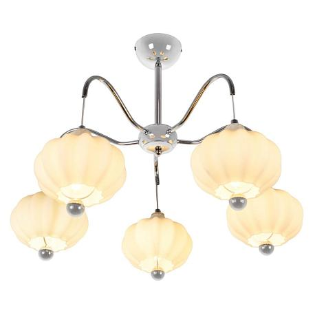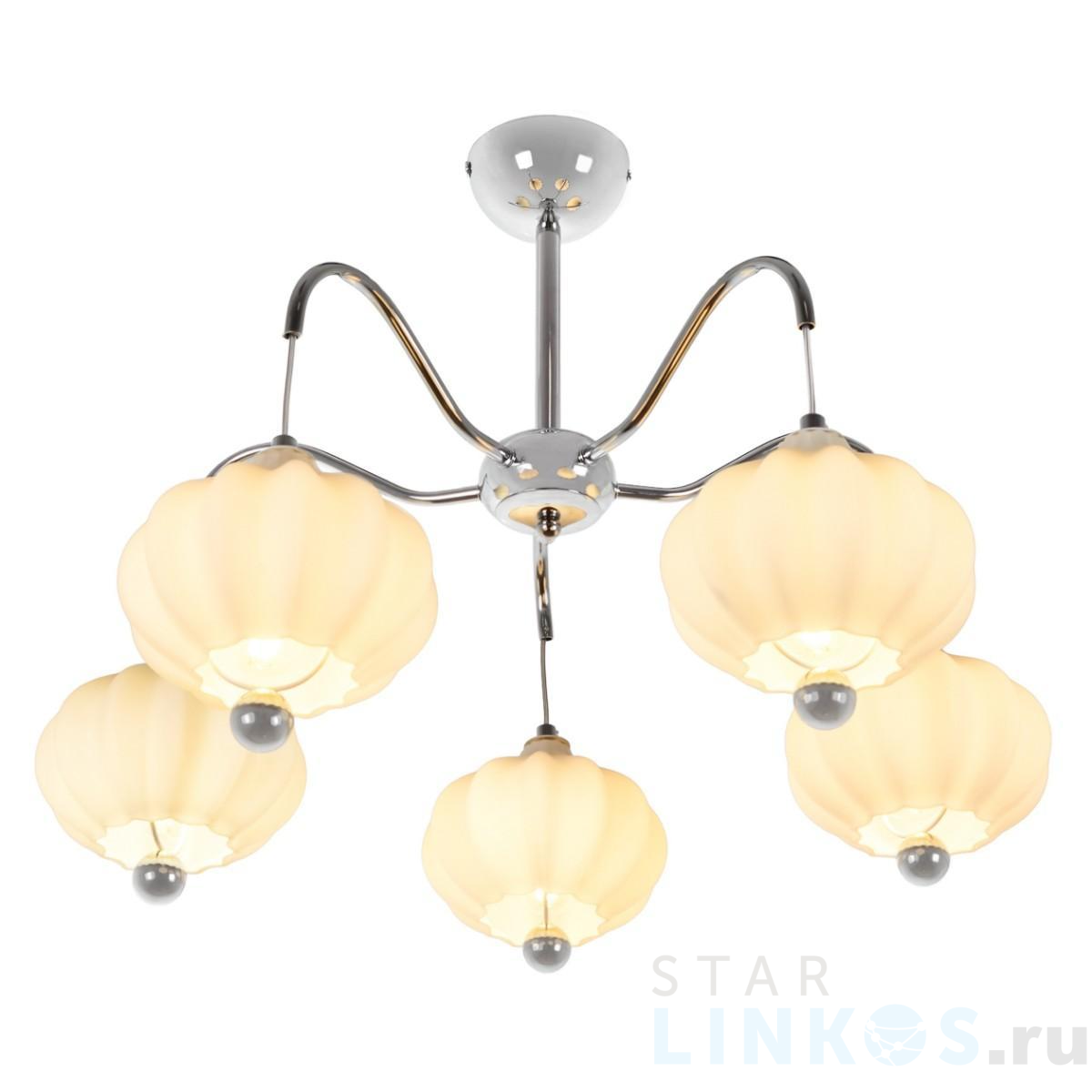 Поставщик рекомендует использовать лампы накаливания с цоколем E27 для освещения площади 14 м2. Потолочная люстра MyFar Katrin MR1811-5C в современном стиле используется в интерьере гостиной с установкой на потолок.