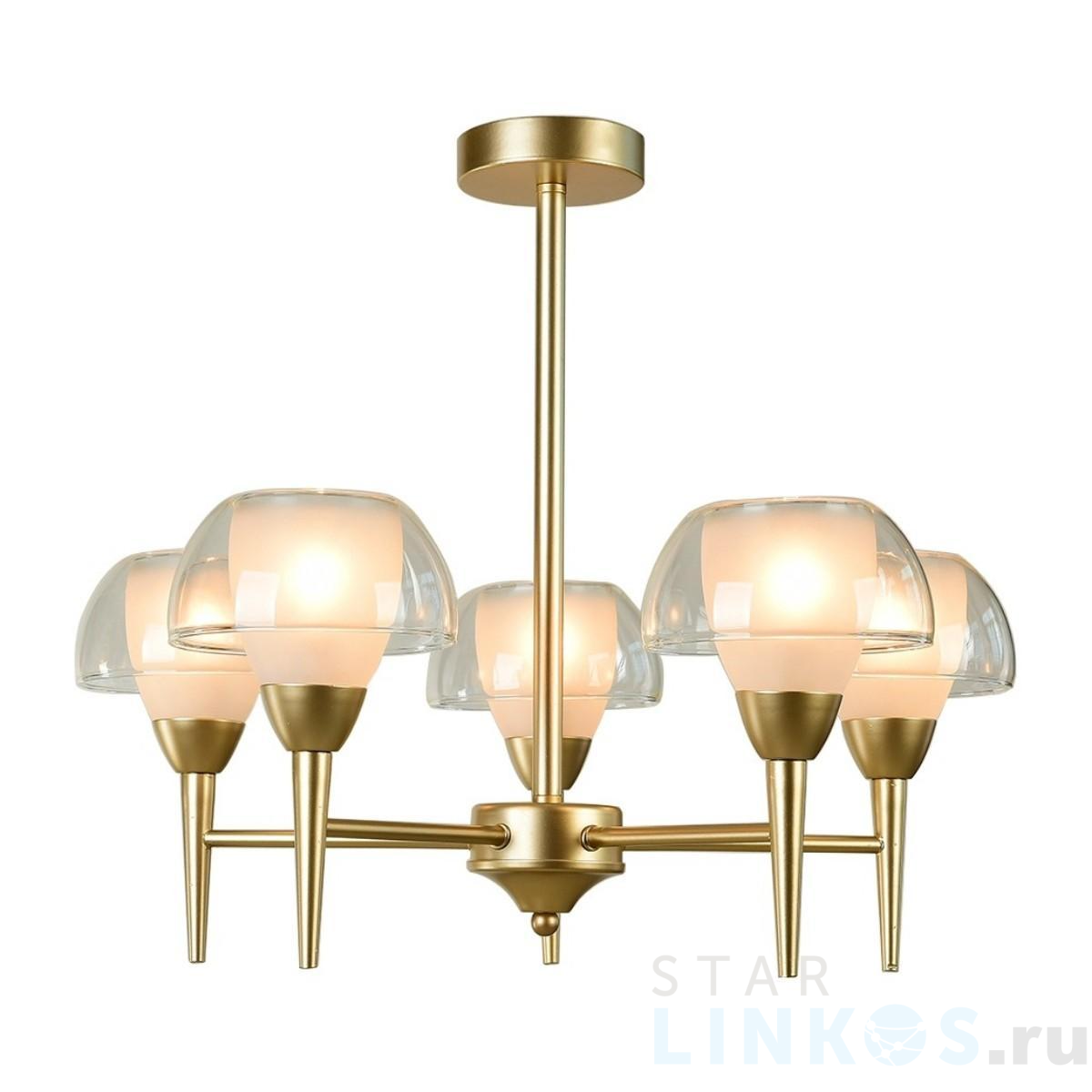 Поставщик рекомендует использовать лампы накаливания с цоколем E14 для освещения площади 12 м2. Потолочная люстра MyFar Silvia MR1300-5P в современном стиле используется в интерьере спальни с установкой на потолок.