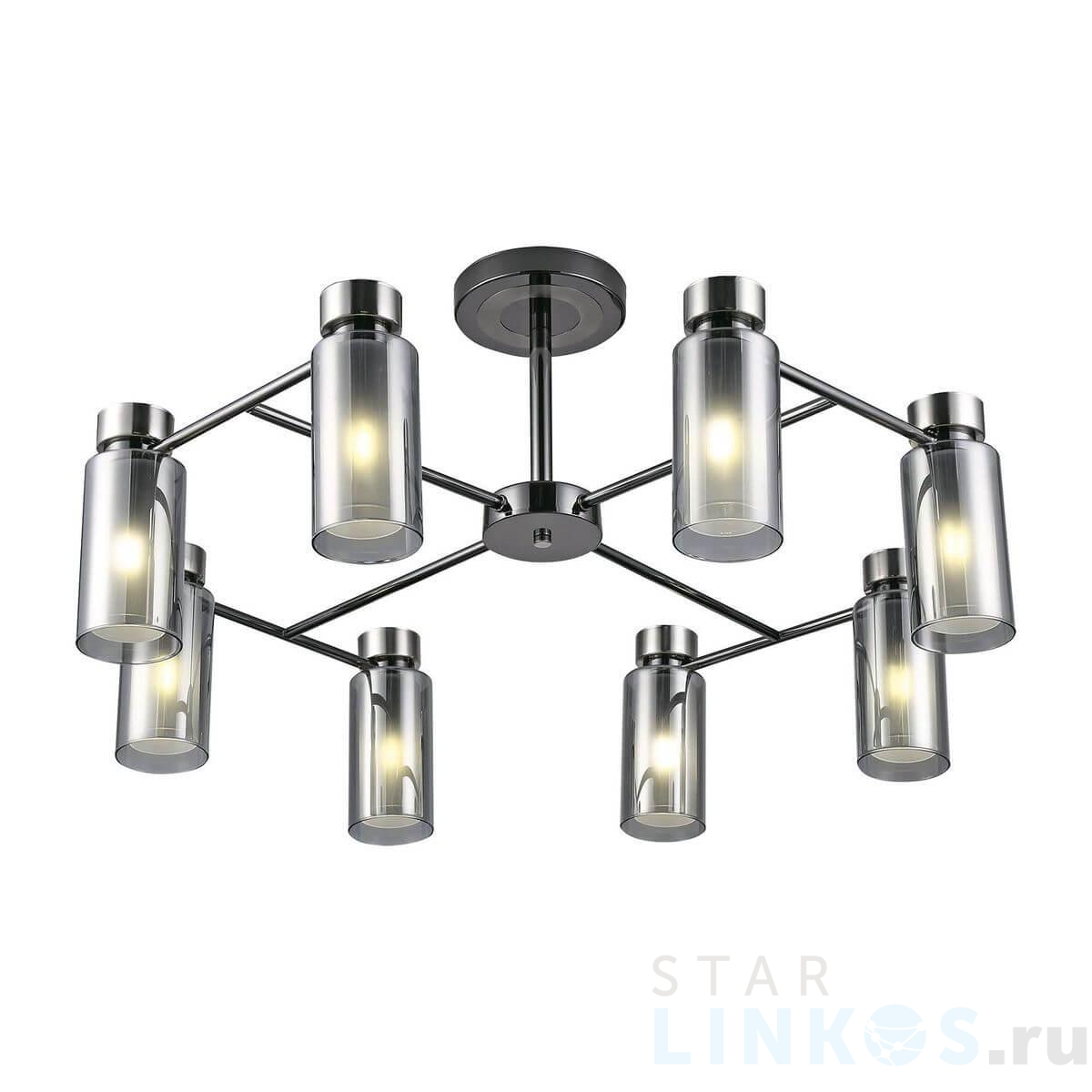 Поставщик рекомендует использовать лампы накаливания с цоколем E14. Потолочная люстра Ritter Novara 52556 1 в стиле Хай-Тек используется в интерьере гостиной с установкой на потолок.
