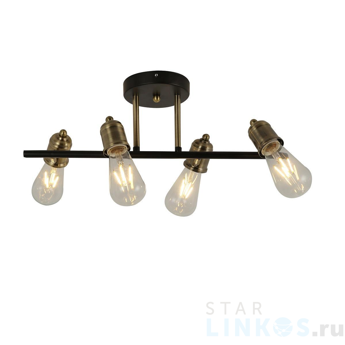 Поставщик рекомендует использовать лампы накаливания с цоколем E27 для освещения площади 12 м2. Потолочная люстра Toplight Jada TL1279D-04AB в стиле лофт используется в интерьере спальни с установкой на потолок.