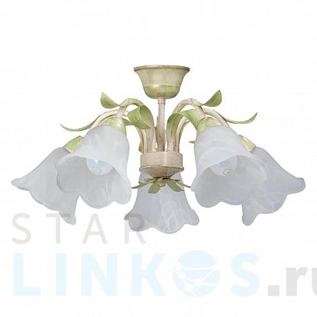 Поставщик рекомендует использовать лампы накаливания с цоколем E14 для освещения площади 11,1 м2. Потолочная люстра Vitaluce V1451/5PL в стиле прованс используется в интерьере гостиной с установкой на потолок.