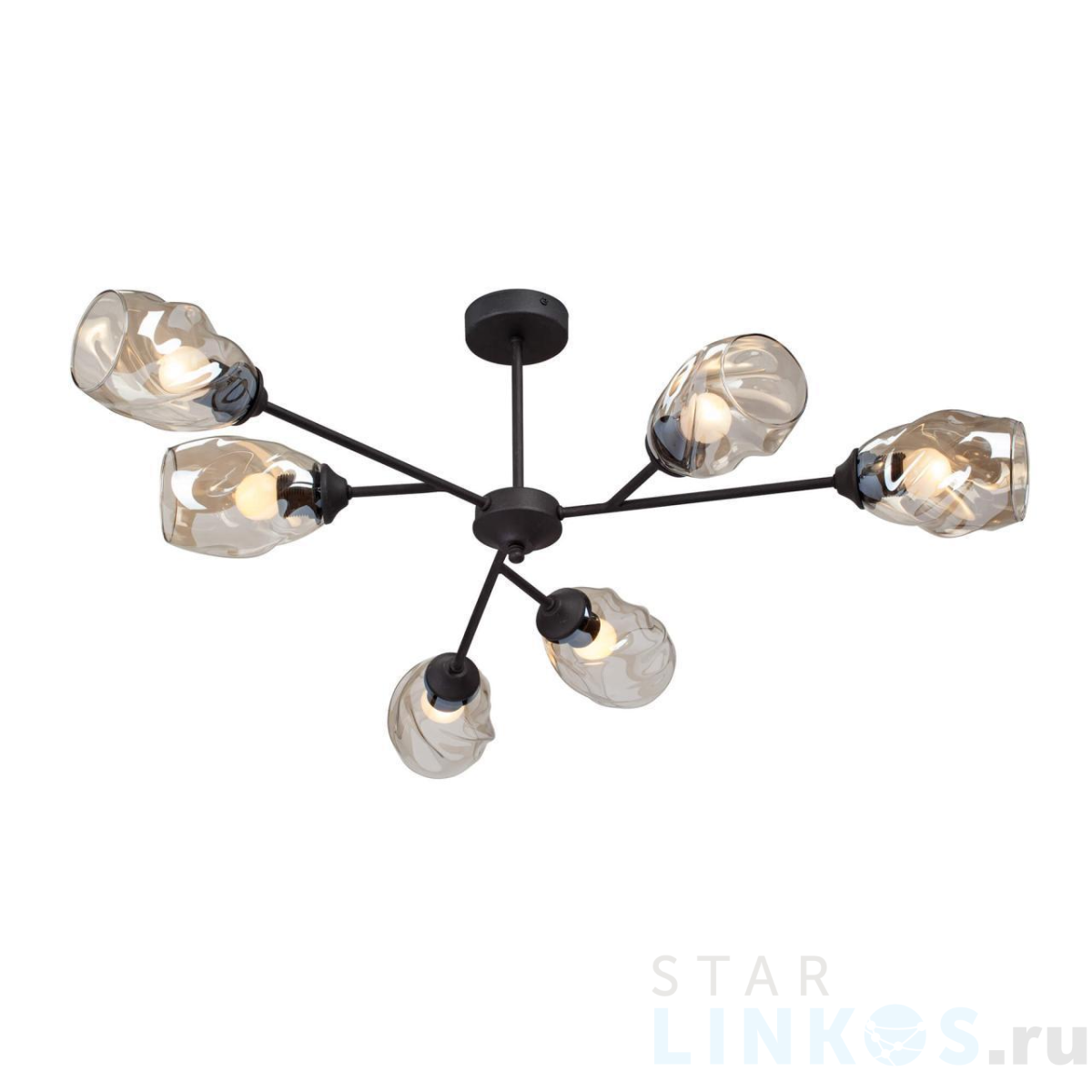Поставщик рекомендует использовать лампы накаливания с цоколем E27 для освещения площади 18 м2. Потолочная люстра Vitaluce V3958-1/6PL в стиле арт-деко используется в интерьере гостиной с установкой на потолок.