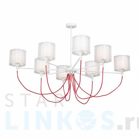Поставщик рекомендует использовать лампы накаливания с цоколем E14 для освещения площади 16 м2. Потолочная люстра Vitaluce V4494-0/8PL в стиле арт-деко используется в интерьере гостиной с установкой на потолок.