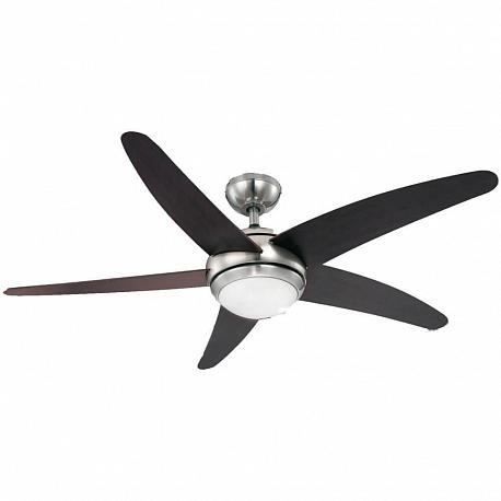 Вентилятор-люстра Globo Fabiola 0306 в современном стиле используется в интерьере спальни с установкой на потолок.