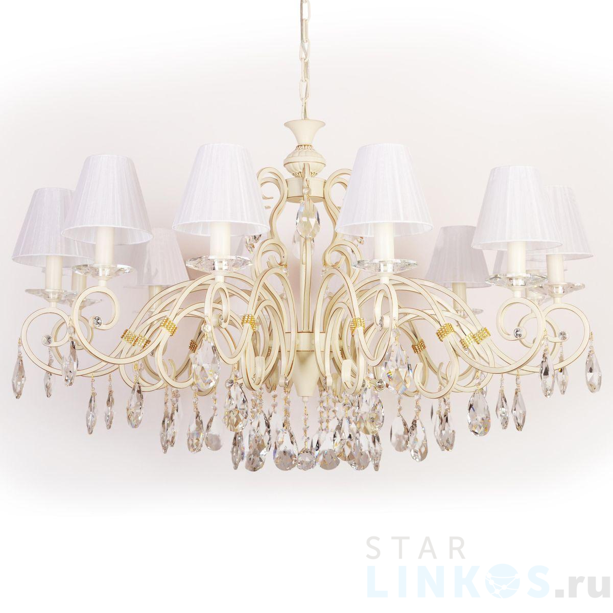 Поставщик рекомендует использовать лампы накаливания с цоколем E14 для освещения площади 36 м2. Подвесная люстра Abrasax 1141/12 в классическом стиле используется в интерьере гостиной с установкой на потолок.