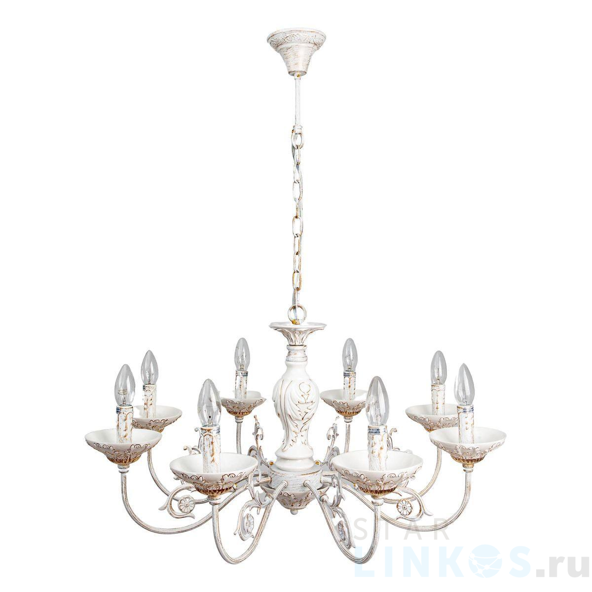 Поставщик рекомендует использовать лампы накаливания с цоколем E14 для освещения площади 18 м2. Подвесная люстра Abrasax Angela SD709 в классическом стиле используется с установкой на потолок.