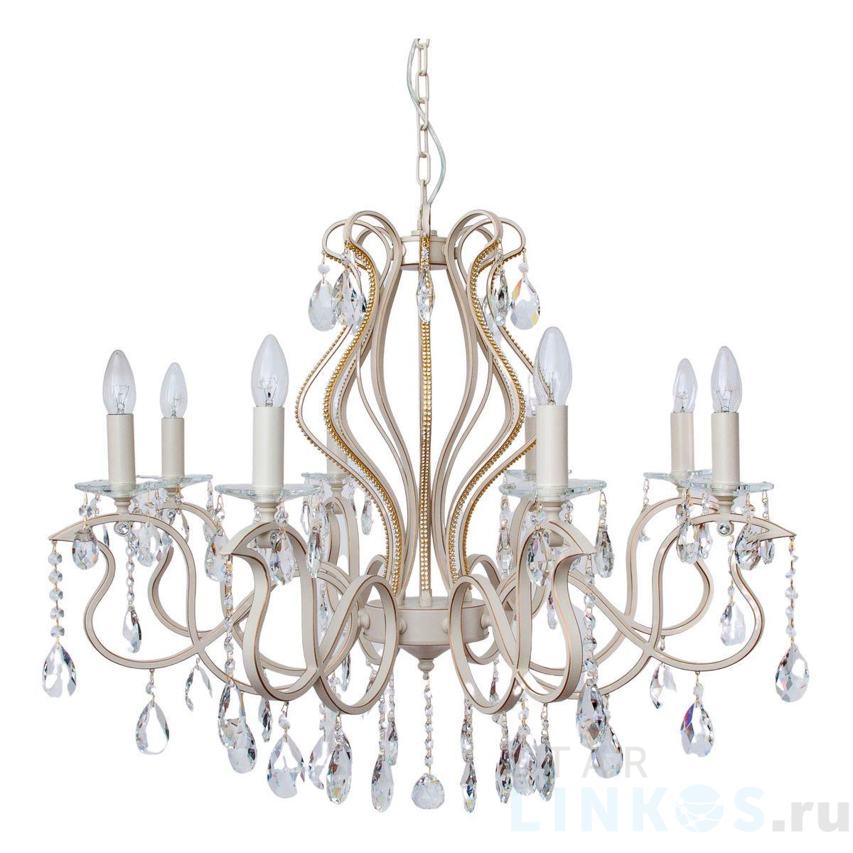 Поставщик рекомендует использовать лампы накаливания с цоколем E14 для освещения площади 18 м2. Подвесная люстра Abrasax Annika 2019/8 в классическом стиле используется с установкой на потолок.
