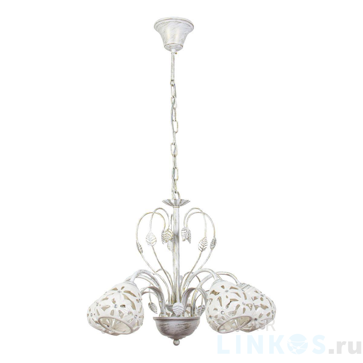 Поставщик рекомендует использовать лампы накаливания с цоколем E14 для освещения площади 12 м2. Подвесная люстра Abrasax Daniela STY40028/5 в кантри-стиле используется с установкой на потолок.