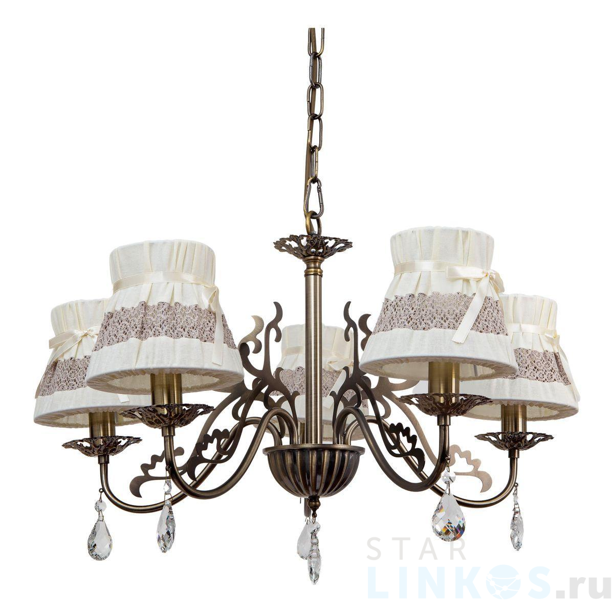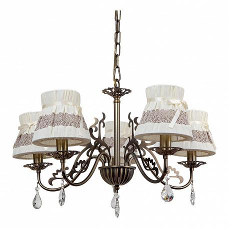 Поставщик рекомендует использовать лампы накаливания с цоколем E14 для освещения площади 12 м2. Подвесная люстра Abrasax Emma L.5401-5BR в кантри-стиле используется с установкой на потолок.