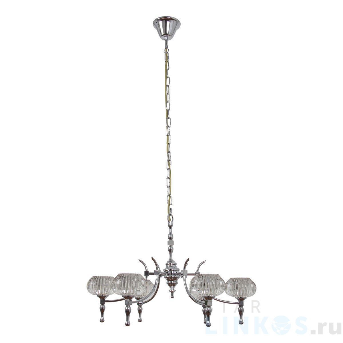 Поставщик рекомендует использовать лампы накаливания с цоколем G9 для освещения площади 18 м2. Подвесная люстра Abrasax Frieda 6444/6.44 в используется с установкой на потолок.