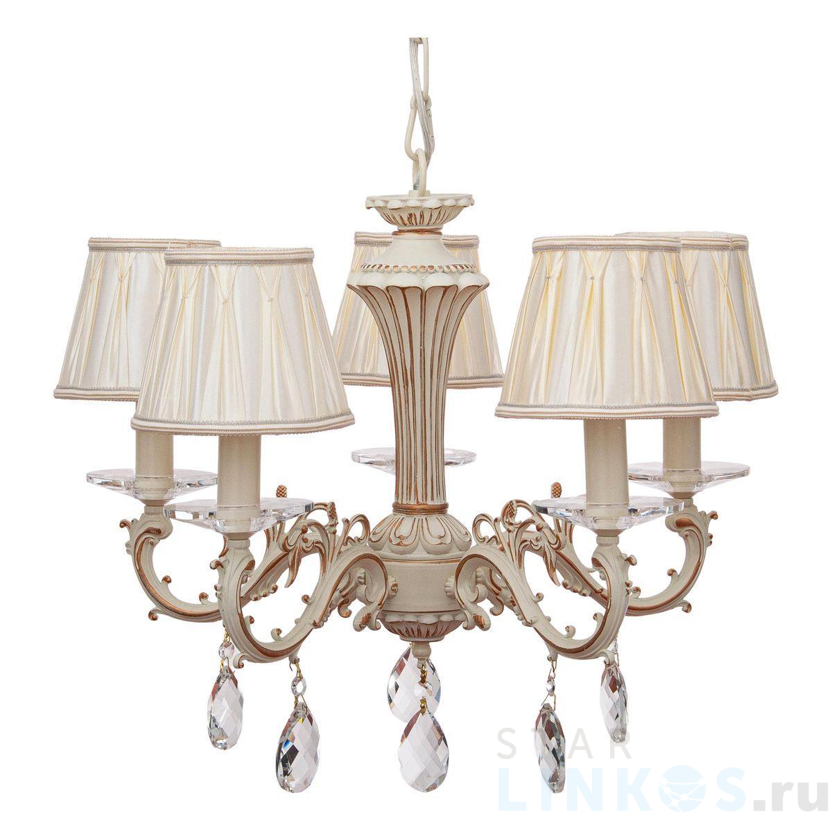 Поставщик рекомендует использовать лампы накаливания с цоколем E14 для освещения площади 12 м2. Подвесная люстра Abrasax Friederike 81234/5 в классическом стиле используется с установкой на потолок.