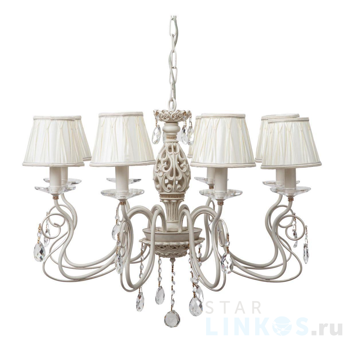 Поставщик рекомендует использовать лампы накаливания с цоколем E14 для освещения площади 20 м2. Подвесная люстра Abrasax Gabriela 81309/8 в классическом стиле используется с установкой на потолок.