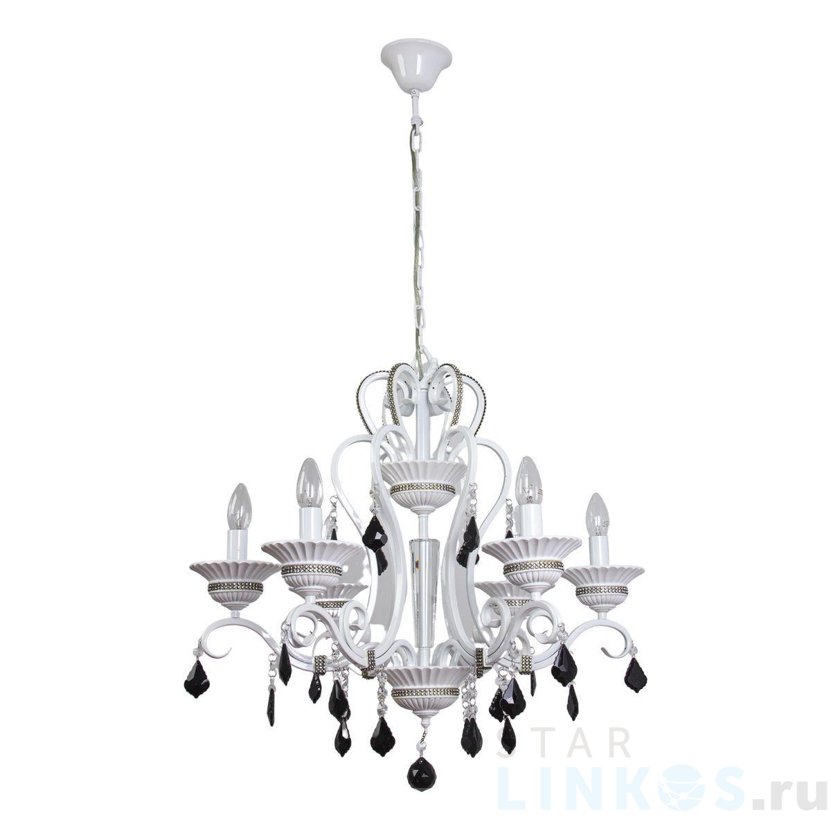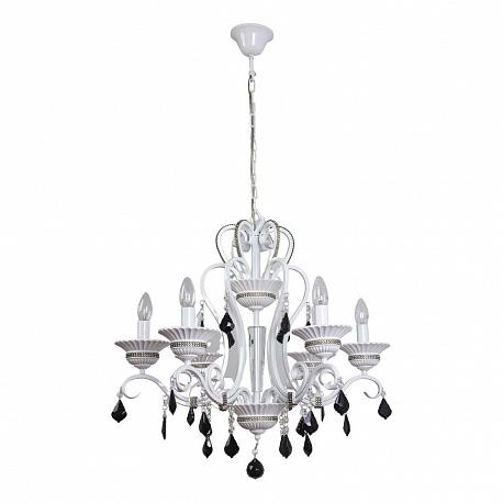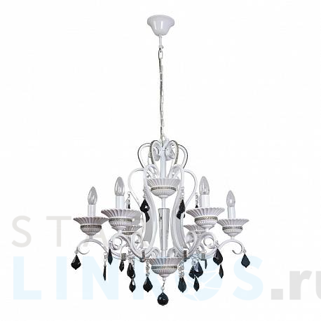 Поставщик рекомендует использовать лампы накаливания с цоколем E14 для освещения площади 15 м2. Подвесная люстра Abrasax Inge 11277/6 в классическом стиле используется с установкой на потолок.