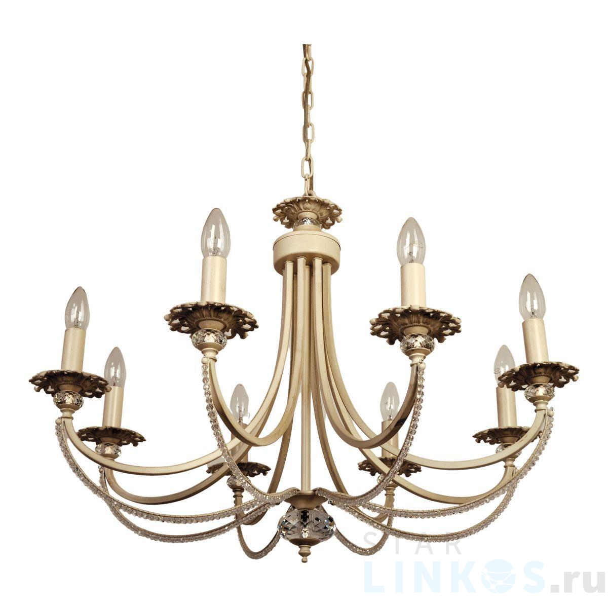 Поставщик рекомендует использовать лампы накаливания с цоколем E14 для освещения площади 18 м2. Подвесная люстра Abrasax Josephine 3007/8(creamgold) в используется с установкой на потолок.