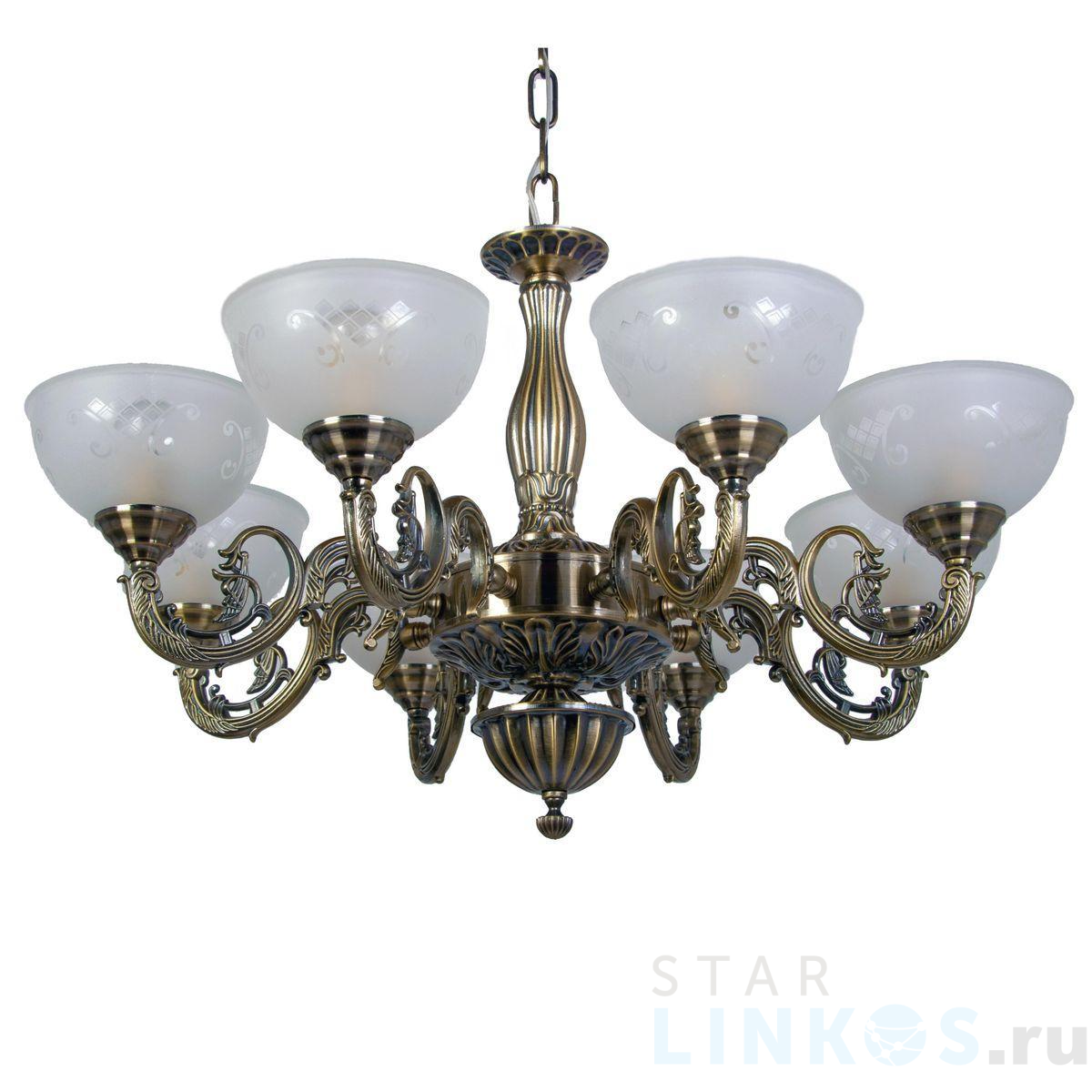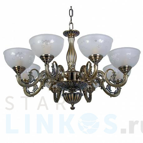 Поставщик рекомендует использовать лампы накаливания с цоколем E14 для освещения площади 24 м2. Подвесная люстра Abrasax Maren HSD89542/8 в классическом стиле используется с установкой на потолок.