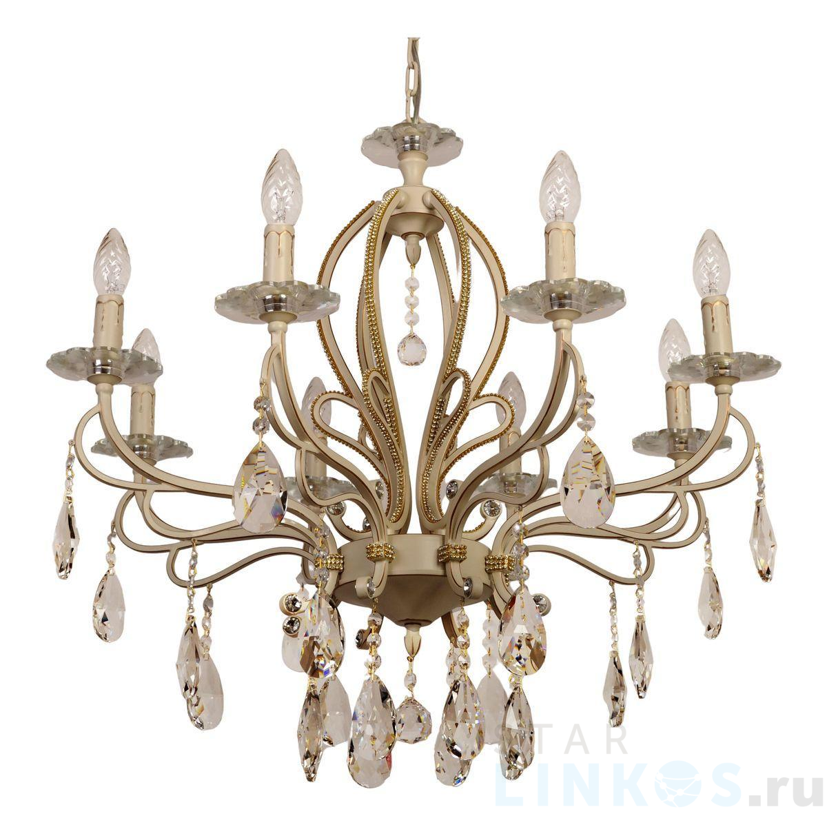 Поставщик рекомендует использовать лампы накаливания с цоколем E14 для освещения площади 18 м2. Подвесная люстра Abrasax Petra 3004/8P в классическом стиле используется с установкой на потолок.