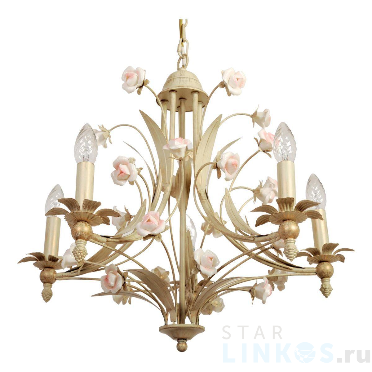 Поставщик рекомендует использовать лампы накаливания с цоколем E14 для освещения площади 12 м2. Подвесная люстра Abrasax Suzanne SD0843/5 в используется с установкой на потолок.