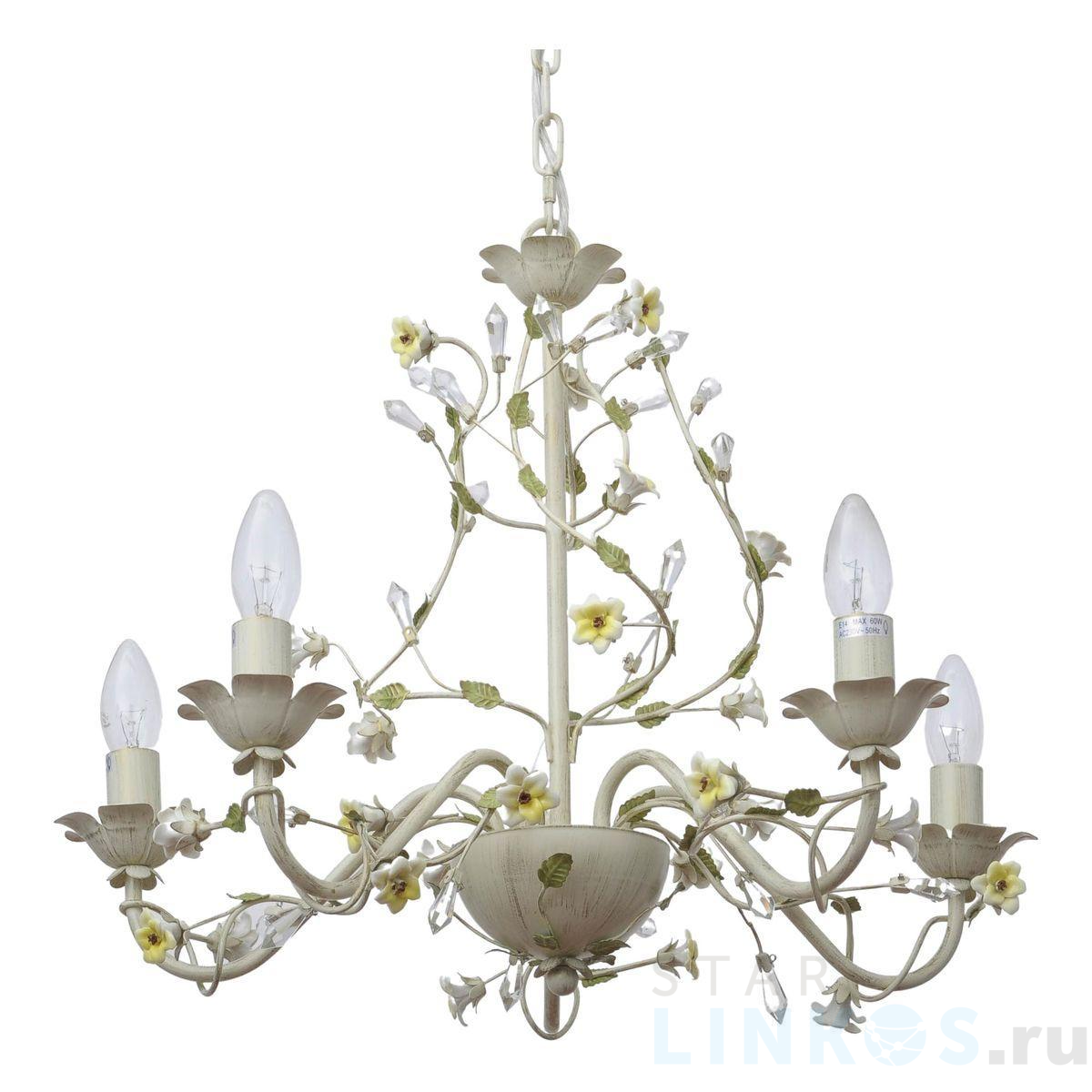 Поставщик рекомендует использовать лампы накаливания с цоколем E14 для освещения площади 12 м2. Подвесная люстра Abrasax Suzanne SD0991/5 в используется с установкой на потолок.