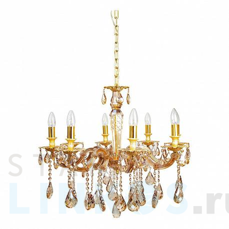 Поставщик рекомендует использовать лампы накаливания с цоколем E14 для освещения площади 20 м2. Подвесная люстра Abrasax Tina 89432/8 в классическом стиле используется с установкой на потолок.