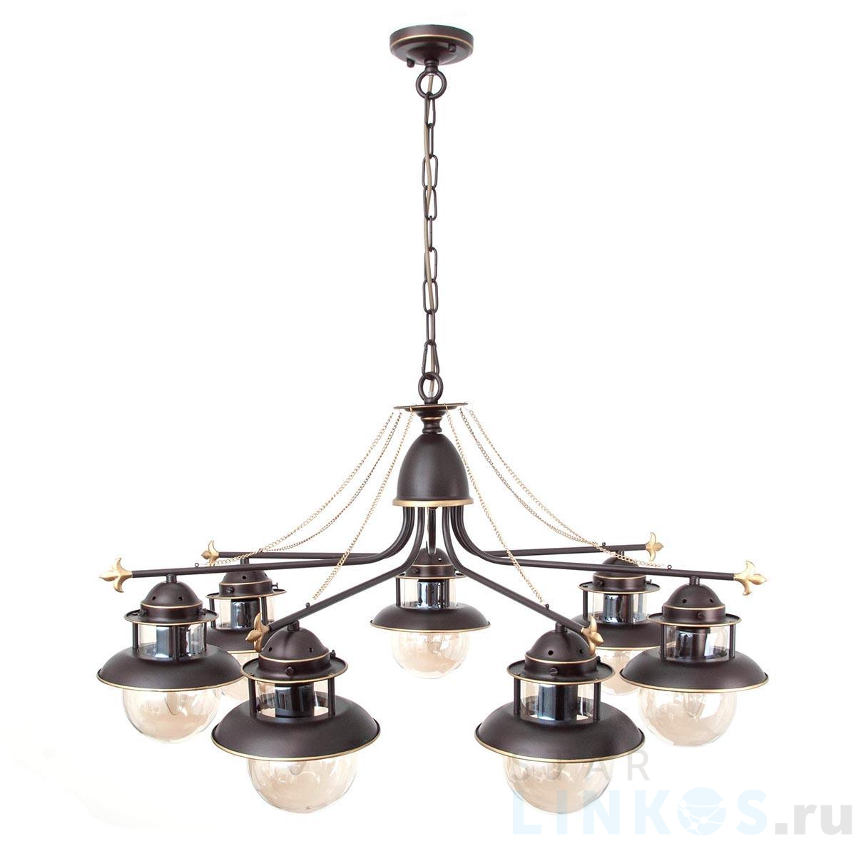 Поставщик рекомендует использовать лампы накаливания с цоколем E14 для освещения площади 18 м2. Подвесная люстра Abrasax Ursula L.9201-7CF в стиле лофт используется с установкой на потолок.