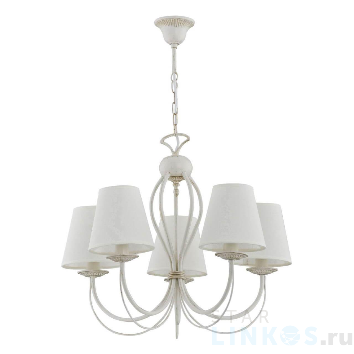 Поставщик рекомендует использовать лампы накаливания с цоколем E14 для освещения площади 11,1 м2. Подвесная люстра Alfa Irma 20915 в стиле прованс используется в интерьере спальни с установкой на потолок.