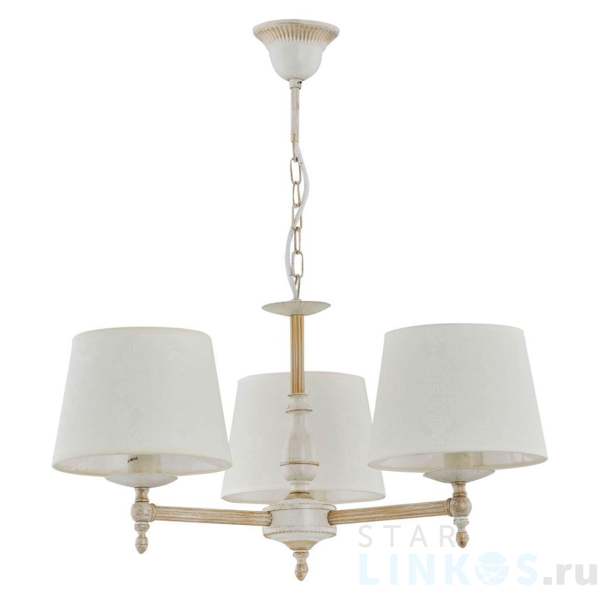 Поставщик рекомендует использовать лампы накаливания с цоколем E14 для освещения площади 6,7 м2. Подвесная люстра Alfa Roksana White 18533 в стиле прованс используется в интерьере спальни с установкой на потолок.