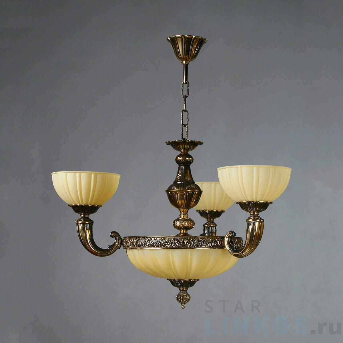 Подвесная люстра Ambiente Lugo 8539/3 PB в классическом стиле используется в интерьере спальни с установкой на потолок.