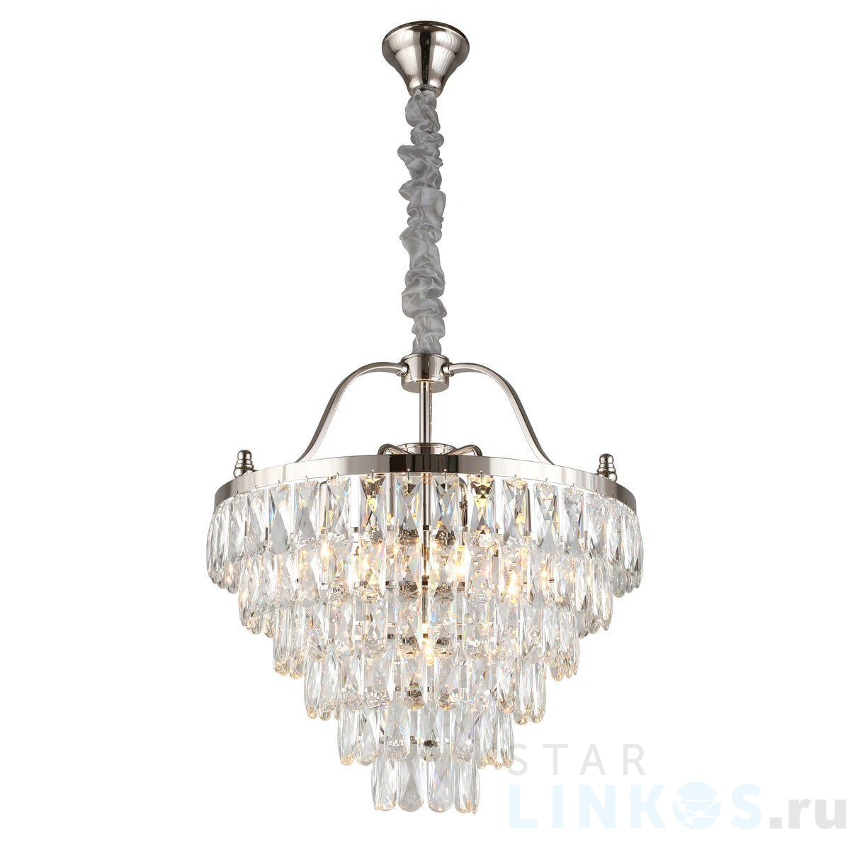 Поставщик рекомендует использовать лампы накаливания с цоколем E14 для освещения площади 15,6 м2. Подвесная люстра Aployt Gerta APL.725.03.07 в классическом стиле используется в интерьере спальни с установкой на потолок.
