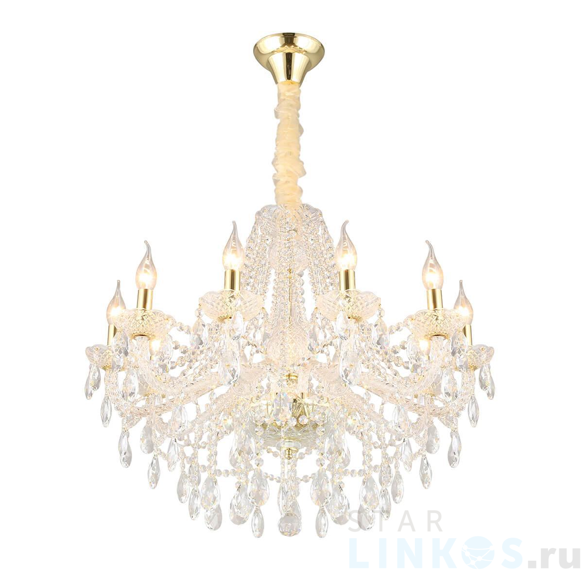 Поставщик рекомендует использовать лампы накаливания с цоколем E14. Подвесная люстра Aployt Koletta APL.755.13.10 в классическом стиле используется в интерьере гостиной с установкой на потолок.