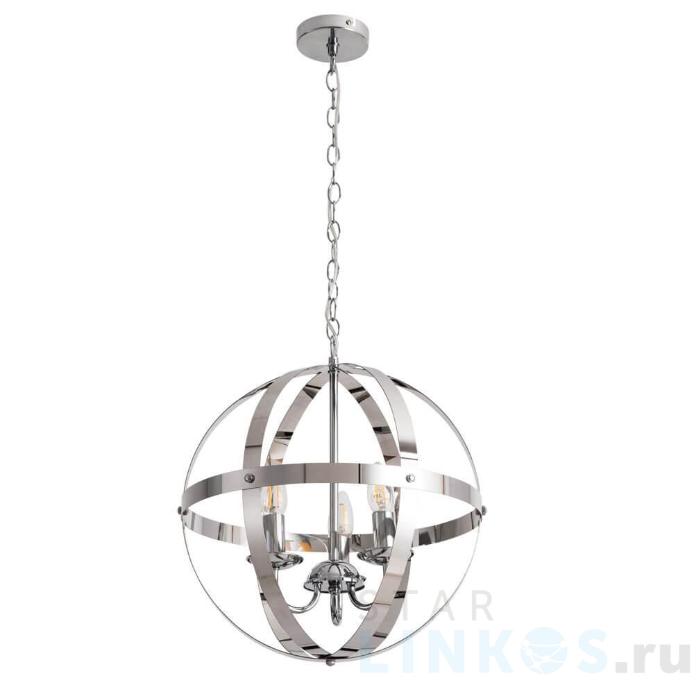 Поставщик рекомендует использовать лампы накаливания с цоколем E14 для освещения площади 6 м2. Подвесная люстра Arte Lamp Babbu A1087SP-3CC в используется в интерьере прихожей с установкой на потолок.