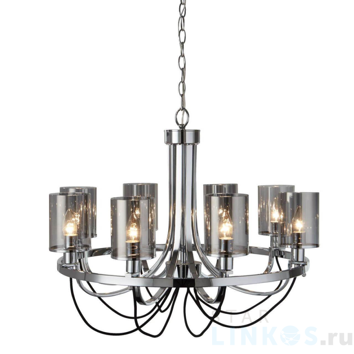 Поставщик рекомендует использовать лампы накаливания с цоколем E14 для освещения площади 17,8 м2. Подвесная люстра Arte Lamp Ombra A2995LM-8CC в используется в интерьере гостиной с установкой на потолок.
