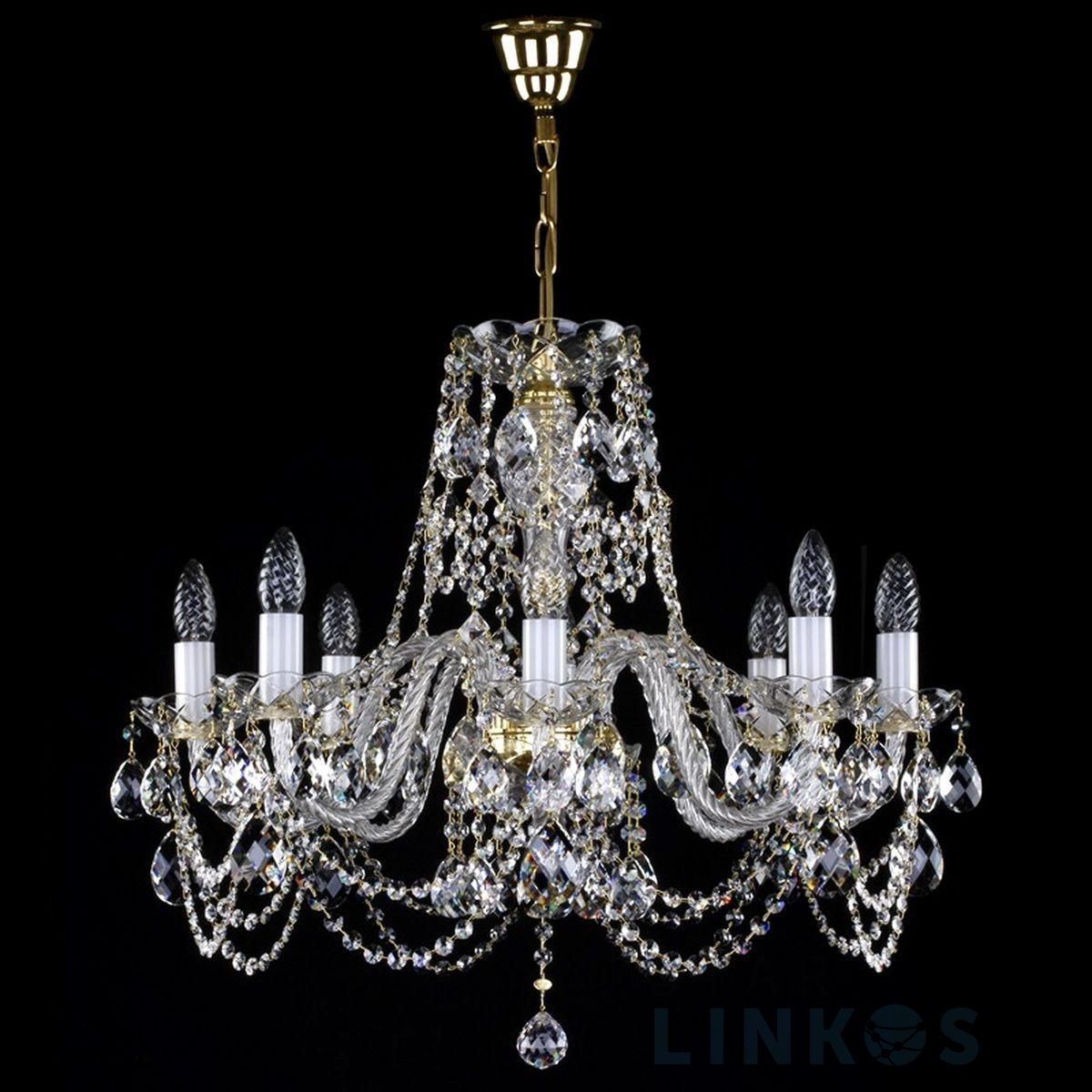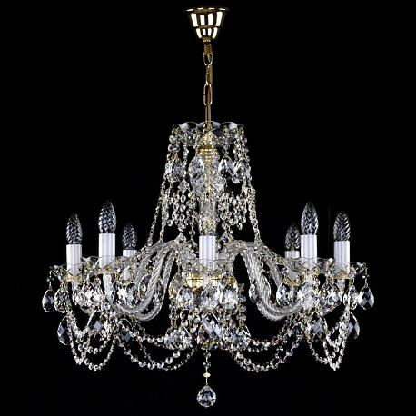 Поставщик рекомендует использовать лампы накаливания с цоколем E14. Подвесная люстра Artglass Donatela VIII. CE в классическом стиле используется в интерьере гостиной с установкой на потолок.