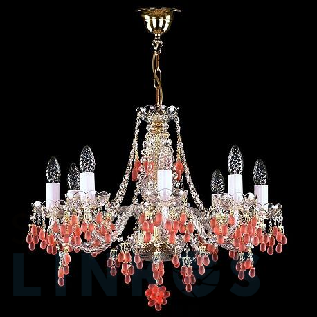 Поставщик рекомендует использовать лампы накаливания с цоколем E14. Подвесная люстра Artglass Rosana VIII. VIno Rozalin в классическом стиле используется в интерьере гостиной с установкой на потолок.