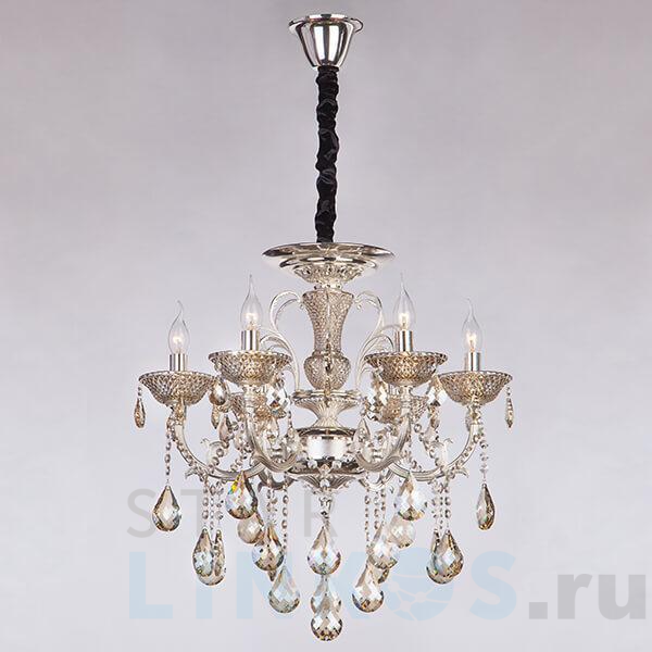 Поставщик рекомендует использовать лампы накаливания с цоколем E14. Подвесная люстра Bogates 278/6 Strotskis в классическом стиле используется в интерьере спальни с установкой на потолок.