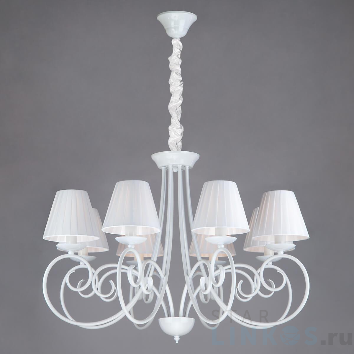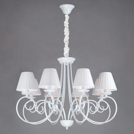 Поставщик рекомендует использовать лампы накаливания с цоколем E14. Подвесная люстра Bogates 280/8 в стиле прованс используется в интерьере гостиной с установкой на потолок.