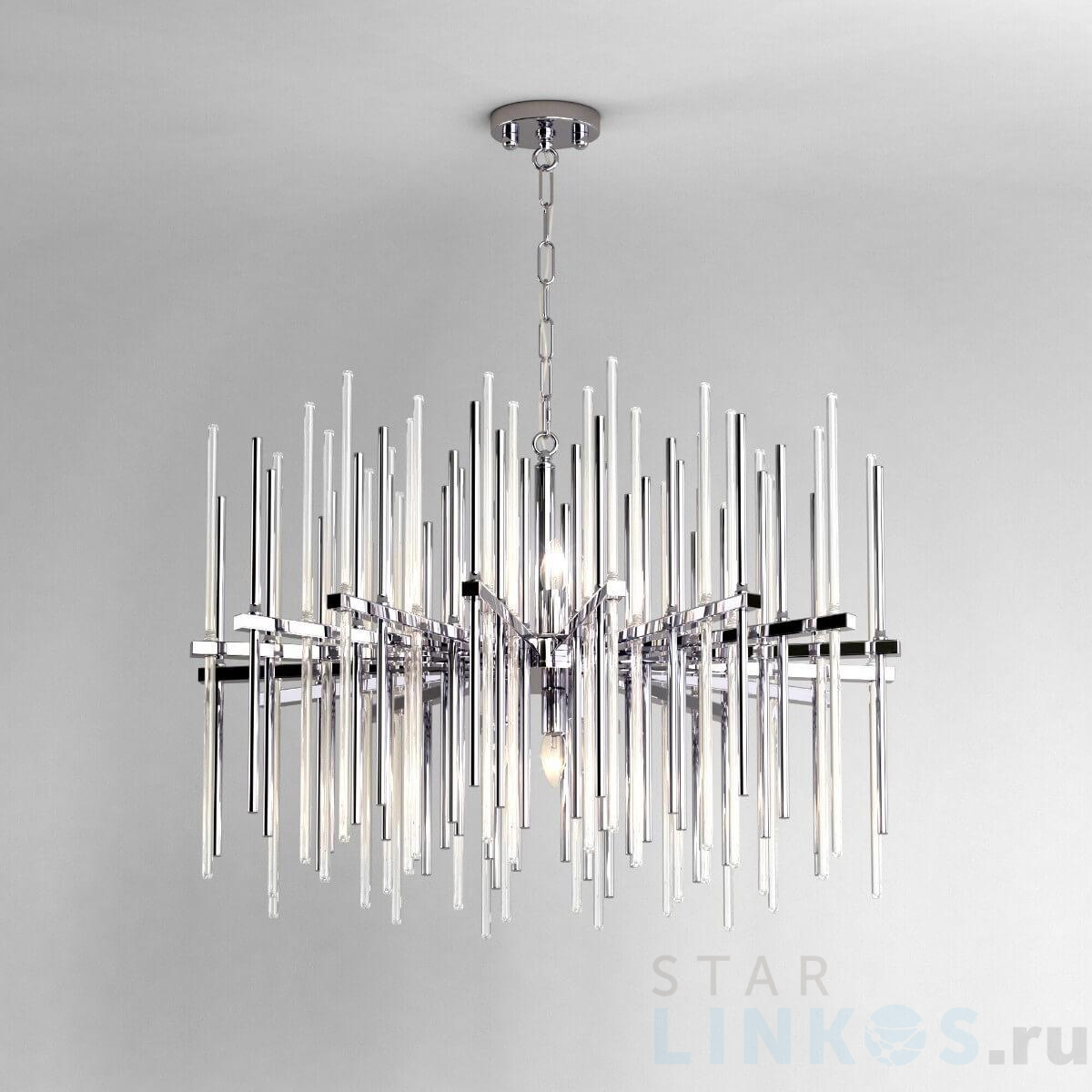 Поставщик рекомендует использовать лампы накаливания с цоколем E14 для освещения площади 16 м2. Подвесная люстра Bogates Allure 355/8 Smart хром в используется в интерьере гостиной с установкой на потолок.