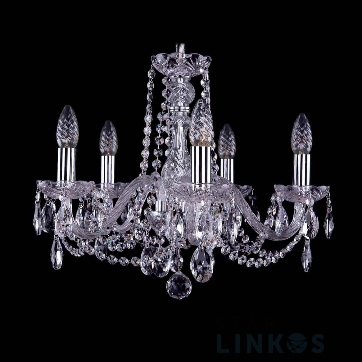 Поставщик рекомендует использовать лампы накаливания с цоколем E14 для освещения площади 11,1 м2. Подвесная люстра Bohemia Ivele 1402/5/160 Ni в классическом стиле используется в интерьере спальни с установкой на потолок.