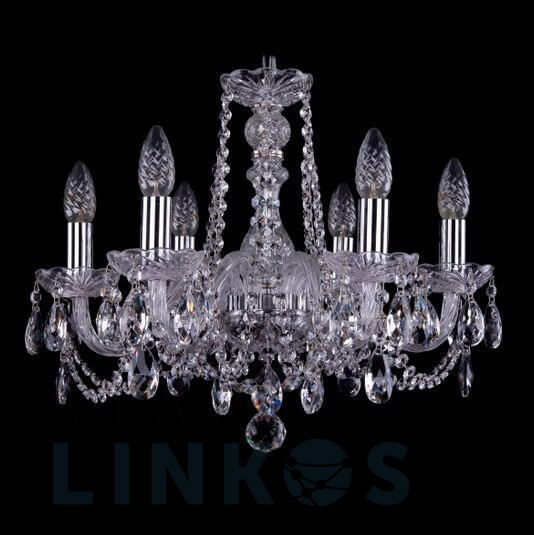 Поставщик рекомендует использовать лампы накаливания с цоколем E14 для освещения площади 13,3 м2. Подвесная люстра Bohemia Ivele 1402/6/160 Ni в классическом стиле используется в интерьере гостиной с установкой на потолок.