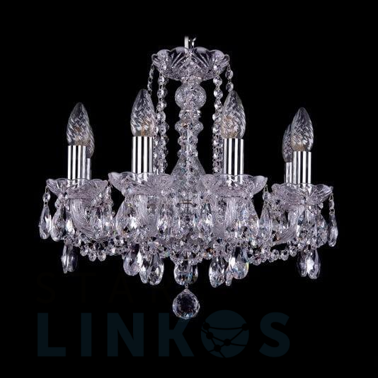 Поставщик рекомендует использовать лампы накаливания с цоколем E14 для освещения площади 17,8 м2. Подвесная люстра Bohemia Ivele 1402/8/141 Ni в классическом стиле используется в интерьере гостиной с установкой на потолок.