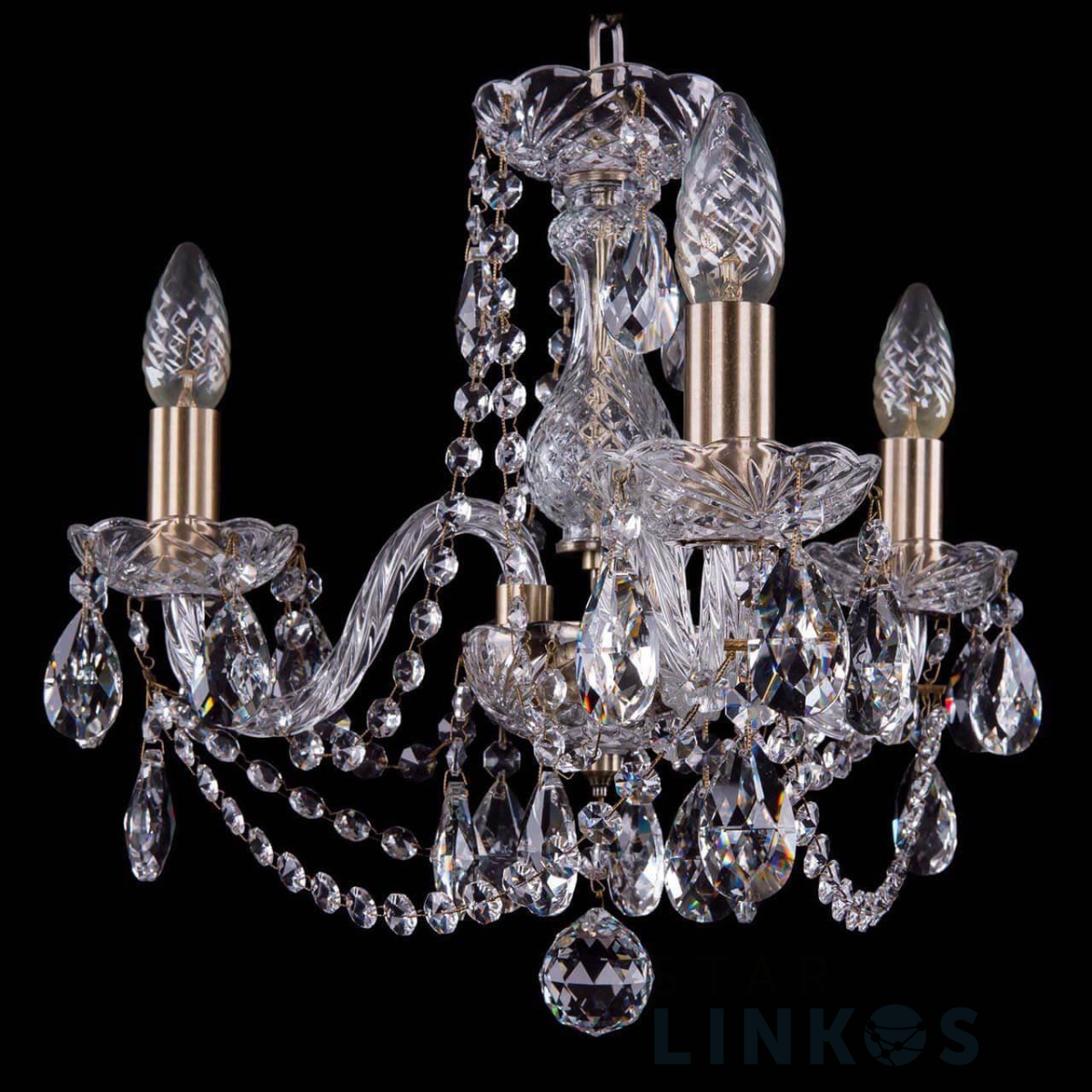 Поставщик рекомендует использовать лампы накаливания с цоколем E14 для освещения площади 6,7 м2. Подвесная люстра Bohemia Ivele 1406/3/141 Pa в классическом стиле используется в интерьере спальни с установкой на потолок.