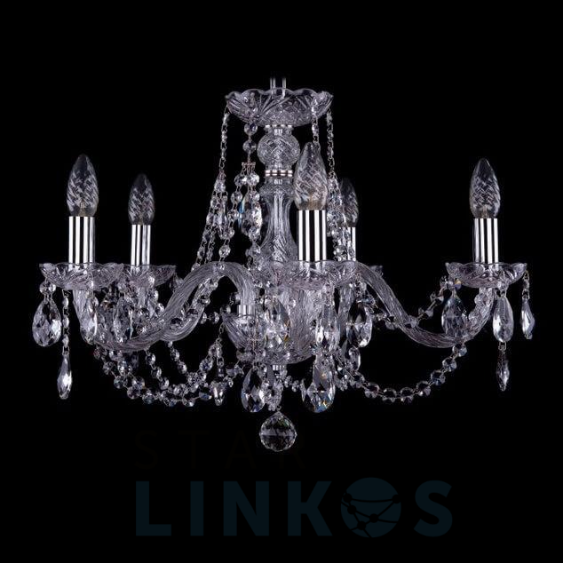 Поставщик рекомендует использовать лампы накаливания с цоколем E14 для освещения площади 11,1 м2. Подвесная люстра Bohemia Ivele 1406/5/195 Ni в классическом стиле используется в интерьере спальни с установкой на потолок.