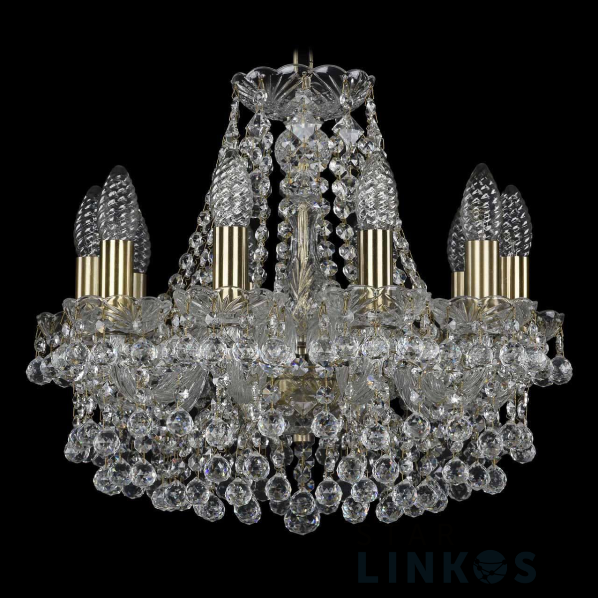 Поставщик рекомендует использовать лампы накаливания с цоколем E14. Подвесная люстра Bohemia Ivele 1409/10/141 Pa в классическом стиле используется в интерьере гостиной с установкой на потолок.